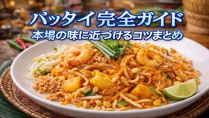 パッタイ完全ガイド|本場の味に近づける材料・代用・失敗しないコツまとめパッタイを家で本格再現する完全ガイド。タレの黄金比、タマリンド・ナンプラー代用、米麺の戻し方、ベチャつき対策、具材と卵のコツまで悩み別に最短で解決。 -