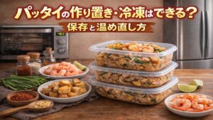 パッタイの作り置き・冷凍はできる?美味しさを落とさない保存と温め直しパッタイは作り置き・冷凍OKだが、米麺は劣化しやすい。美味しさを落とさない保存のコツ、冷凍向き・不向きの具材、解凍と温め直しの正解、復活テクまで解説。 -