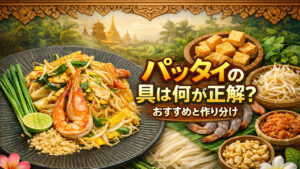 パッタイの具は何が正解?エビ・鶏・豚・厚揚げのおすすめと作り分けパッタイの具はエビが王道だが、鶏・豚・厚揚げでも本格的に作れる。具材別の相性、下処理、火入れ順、味の作り分け、失敗しない分量とコツを解説。 -