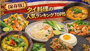 【保存版】タイ料理の人気ランキングTOP15|家で作れる定番を一気に紹介人気タイ料理をランキング形式で総まとめ。定番ガパオ・トムヤムからカレー、麺、サラダまで“まず食べたい&作りたい”メニューを厳選。辛さ・難易度・味タイプ別の選び方と、各レシピ/代用/失敗対策への導線も完備。
