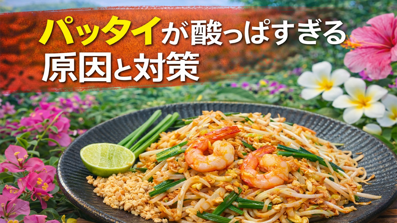 パッタイが酸っぱすぎる原因は、タマリンドの入れすぎだけでなく、濃度・酸味の二重化(タマリンド+ライム等)・砂糖や旨味不足・香ばしさ不足で酸が“刺さっている”こと。