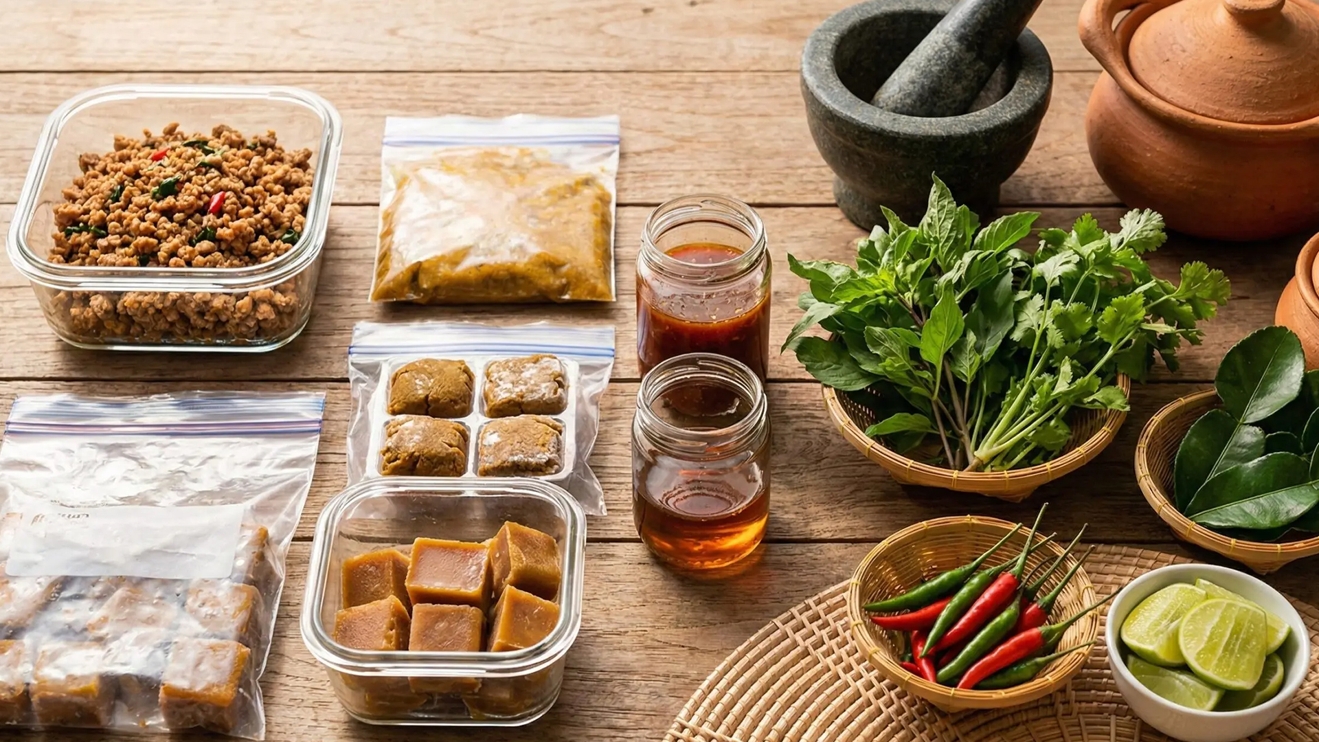 タイ料理は、冷凍に強いパーツ/弱いパーツがはっきりしています。パーツ分けして保存すれば、翌日でも“店の味”にかなり近づけられます。