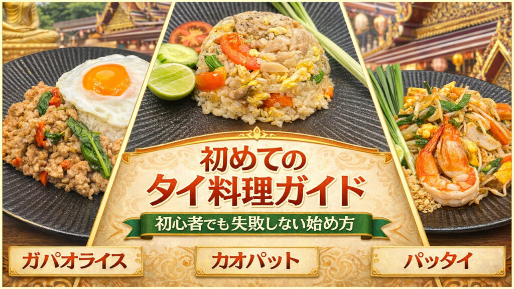 子どもでも食べやすいタイ料理を知りたい方へ。カオパット、カイジャオ、カオマンガイ、パッタイ、マッサマンカレーなど、辛くない王道5品を家族向けの視点でやさしく紹介します。 -
