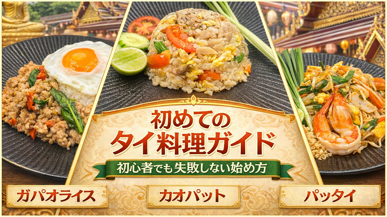 この記事では、初めてタイ料理に挑戦する方に向けて、まず作りやすい3品、先に知っておくと失敗しにくい基本調味料、そして最初につまずきやすいポイントを、できるだけ分かりやすくまとめました。