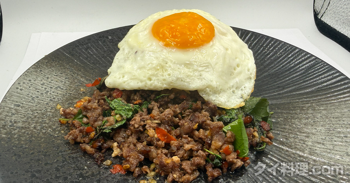 ご飯にガパオをのせ、目玉焼きをのせて完成。 画像(アイキャッチ)